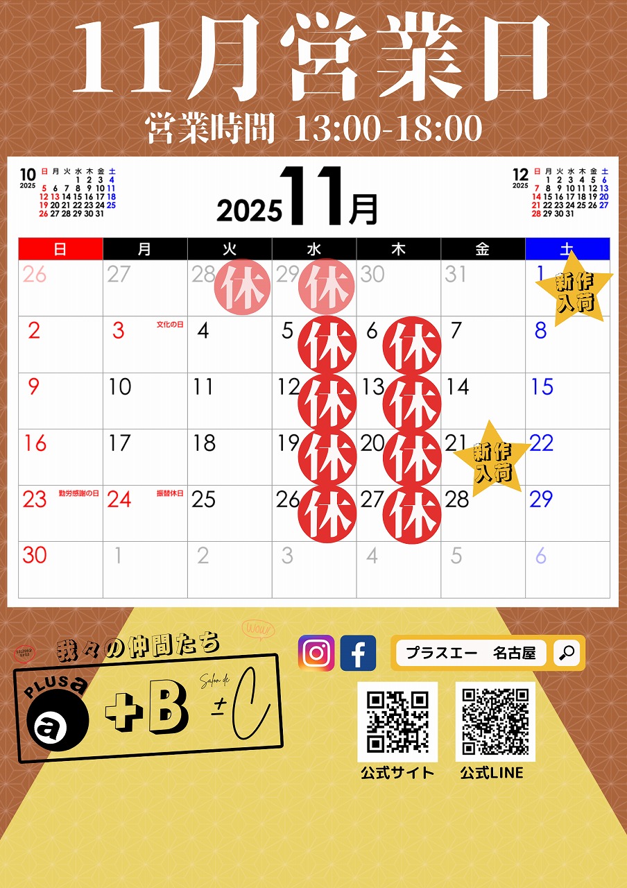 店内の様子や、新着商品のご案内。